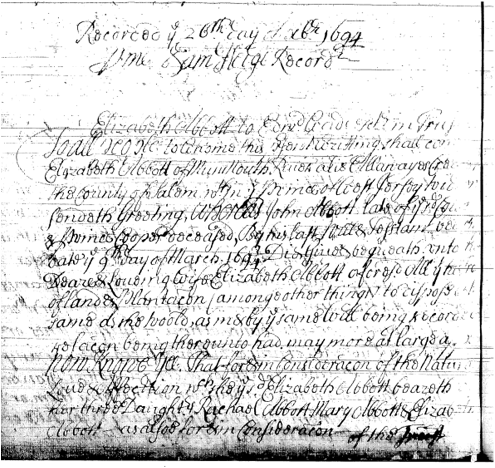 Elizabeth Abbott —Land Deed—Salem Co., NJ—1694 |
