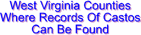 Castos can be found in many of the counties of West Virginia. However, what I have tried to do here is just indicate counties where I have uploaded various birth, marriage, death, census, cemetery or other records I have found that don't relate to any one Casto family but all the Castos of that county.